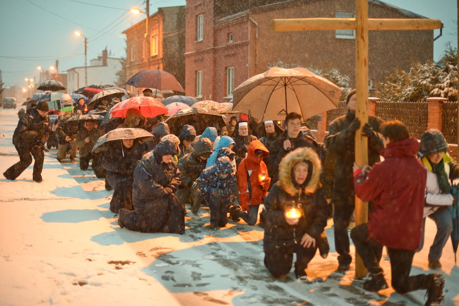 Tradycyjna już Droga Krzyżowa ulicami Miasta, tym razem w śnieżnej odsłonie.